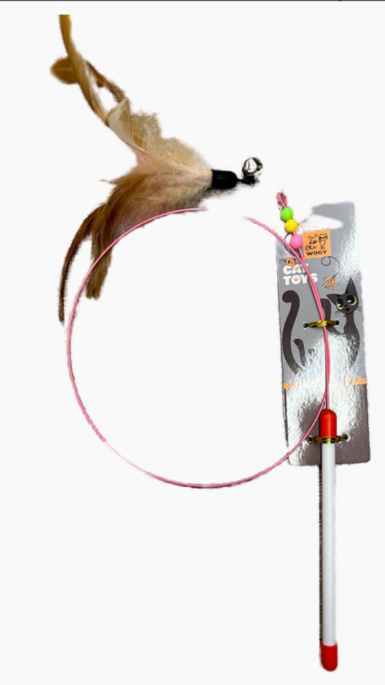Дразнилка (Wogy) Перья съемные с колокольчиком на палочке с декором 13см, l=80см для кошек