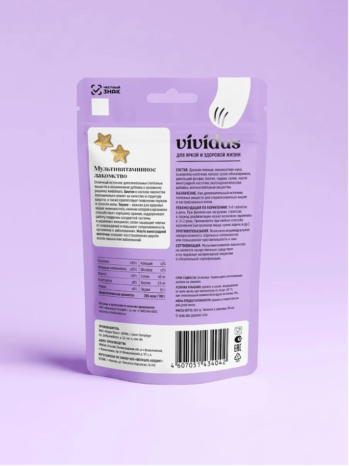 Vividus заботится о здоровье и счастье ваших любимцев. Наши лакомства — это идеальный способ показать свою любовь и заботу о кошке.