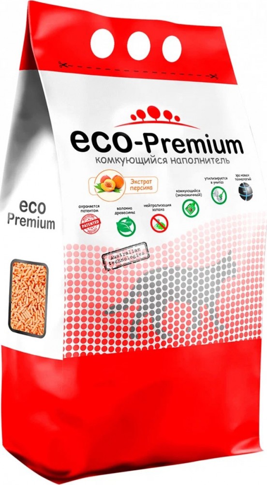Наполнитель ЭКО-ПРЕМИУМ ПЕРСИК для кошек, древесный, комкующийся, 5 л, 1,9 кг
