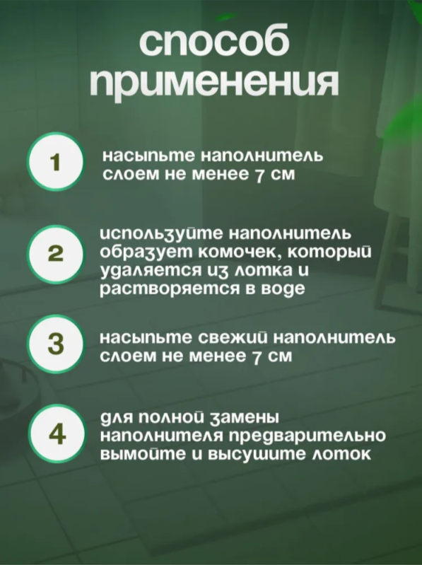 1. ОБЯЗАТЕЛЬНО насыпайте наполнитель на менее 7 см лоток.