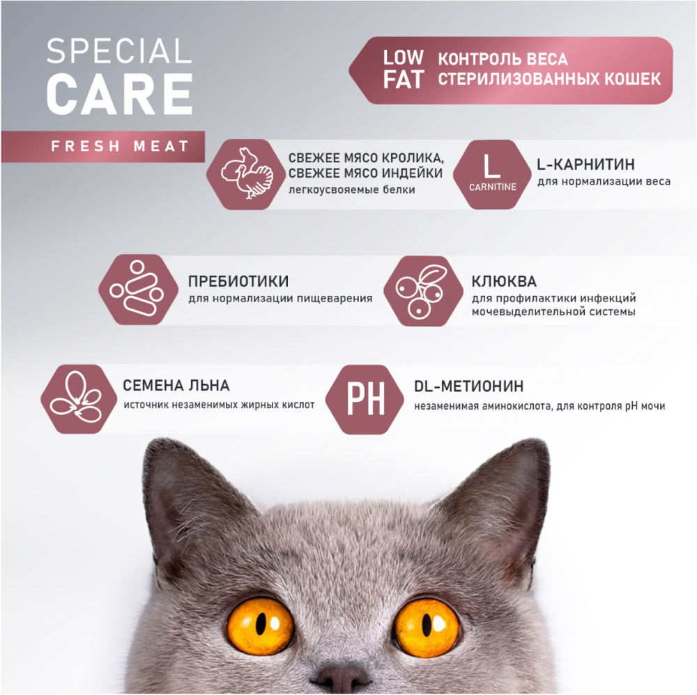 Сухой корм AWARD SPECIAL CARE Weight Control для взрослых стерилизованных кошек для контроля веса со свежим мясом кролика 10 кг