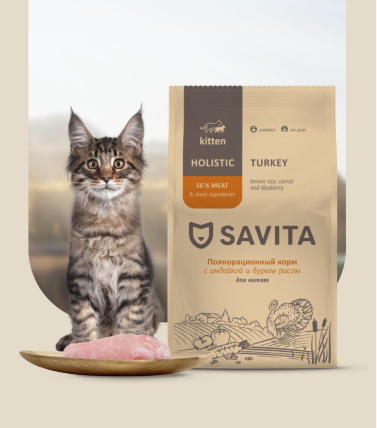 Сухой корм Savita для КОТЯТ с индейкой и бурым рисом