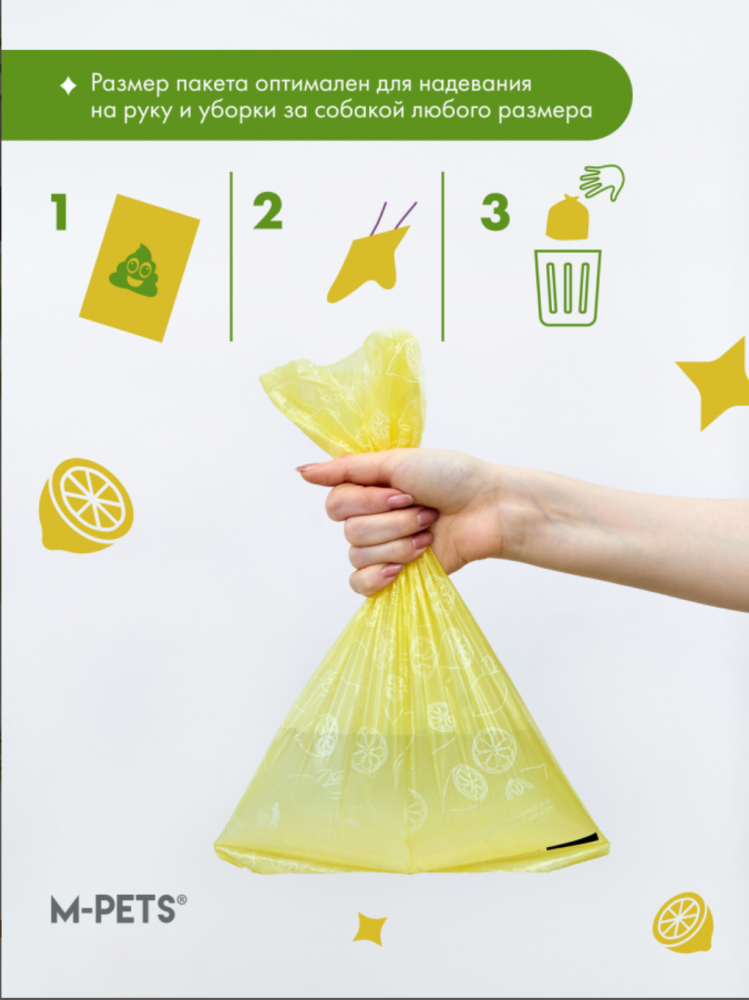 M-PETS Пакеты гигиенические для выгула собак, с ароматом лимона, 60 шт