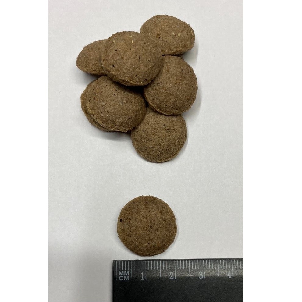 Показатели: протеин - 21% , жир - 10%, клетчатка - 1,8%, кальций - 1,5% , фосфор - 1%, калий - 0,5%, натрий - 0,35%, магний - 0,12%, витамин А - 24800 МЕ, витамин D3 - 800 МЕ, витамин Е - 600 мг, витамин В1 - 10 мг, витамин