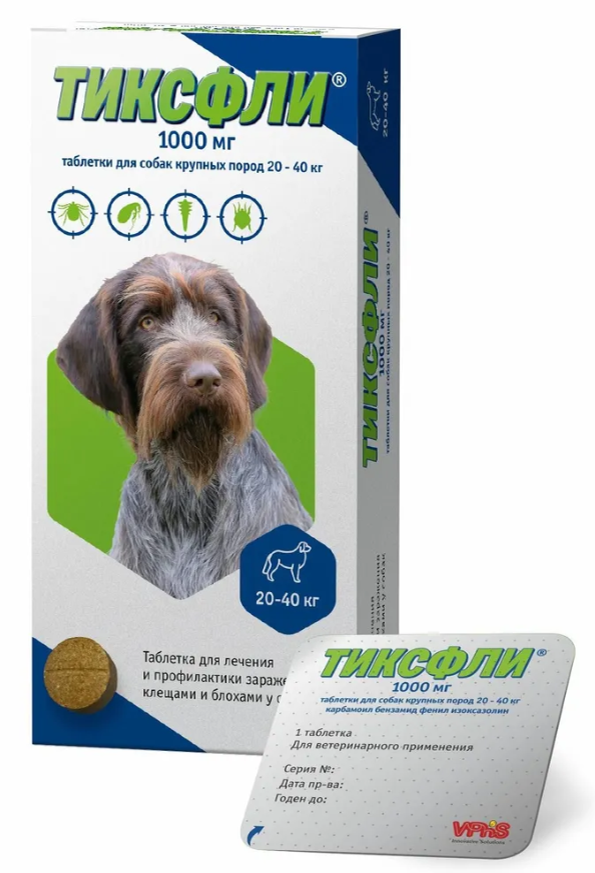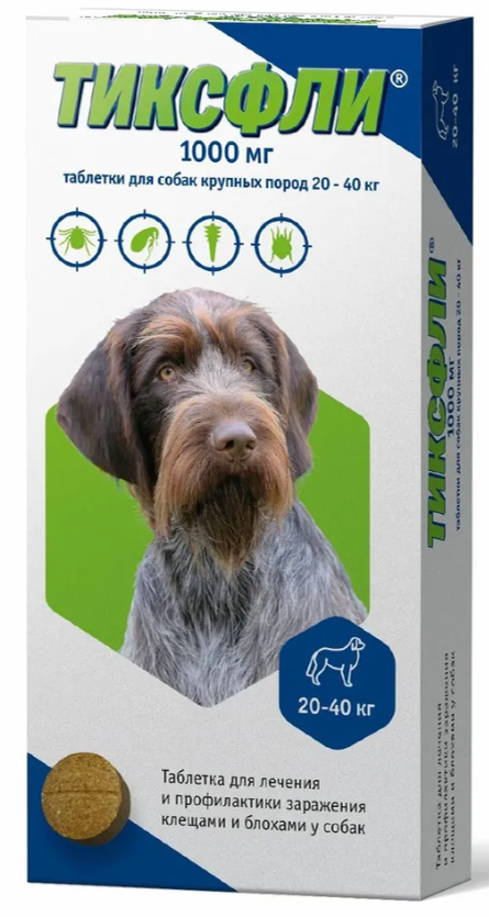 ТИКСФЛИ 1000 мг, таблетки для собак крупных пород 20-40 кг, 1