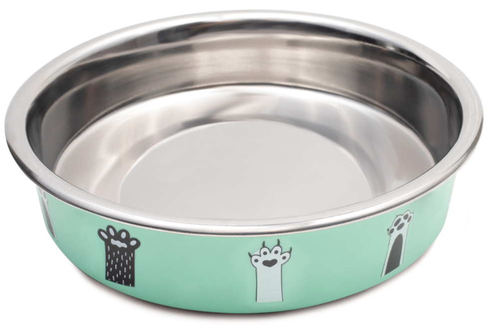 Стильная круглая миска из нержавеющей стали для кошек и собак небольших пород. Она идеально подходит как для воды, так и для корма разной консистенции. Миска комфортна для питомца и легко моется под струей проточной воды с использованием моющих бытовых средств. Прорезиненное основание обеспечивает максимальную устойчивость, препятствуя скольжению изделия во время использования, а оригинальный принт сделает такую миску украшением любого интерьера. Цвет изделия: мятный. Объем: 150 мл. Размеры: 110*110*30мм. Подробнее