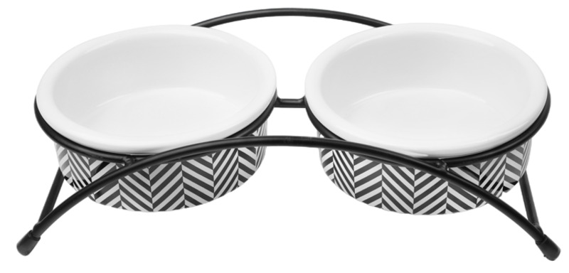 Этот функциональный комплект из двух универсальных круглых мисок на подставке выполнен из керамики высокого качества и отлично подходит для кошек и собак мелких пород. Такие миски идеальны как для воды, так и для корма разной консистенции. Изделие комфортно для питомца и легко моется под струей проточной воды с использованием моющих бытовых средств. А эффектный дизайн стилизованной под ковку подставки позволит ей стать украшением любого интерьера. Цвет изделия: черно-белый. Размер изделия: d дна - 112мм; d в верхней части - 125мм; высота - 45мм. Размер подставки - 280*135*65мм. Объем - 2*0,25л. Подробнее
