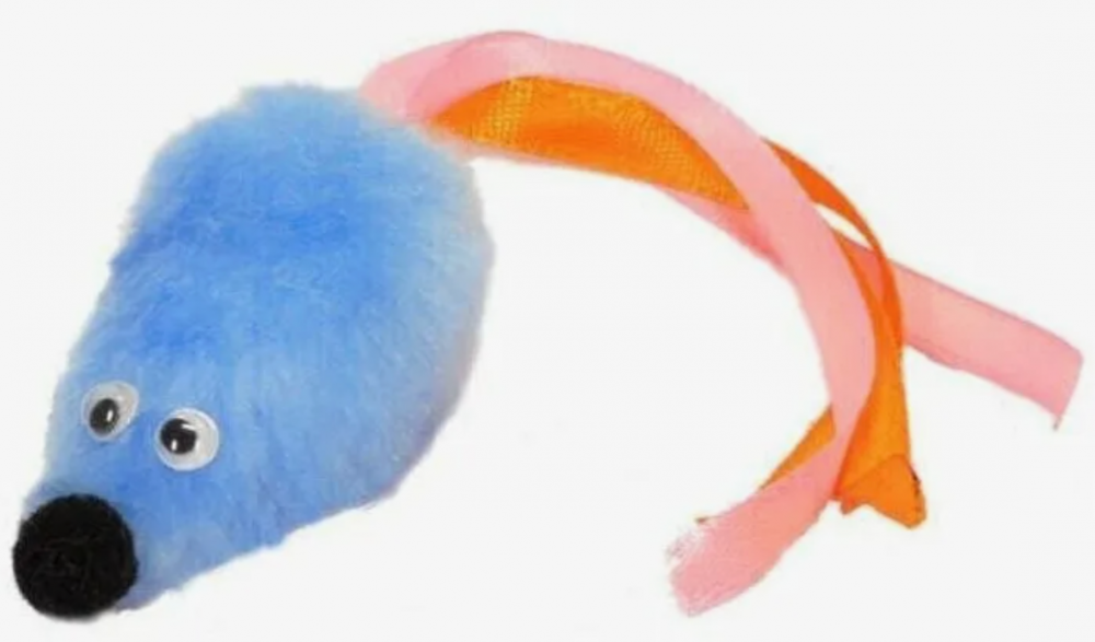 sh-07165 GoSi Игрушк для Кошек "Мышь с кошачьей мятой, хвост-ленточки" голубая