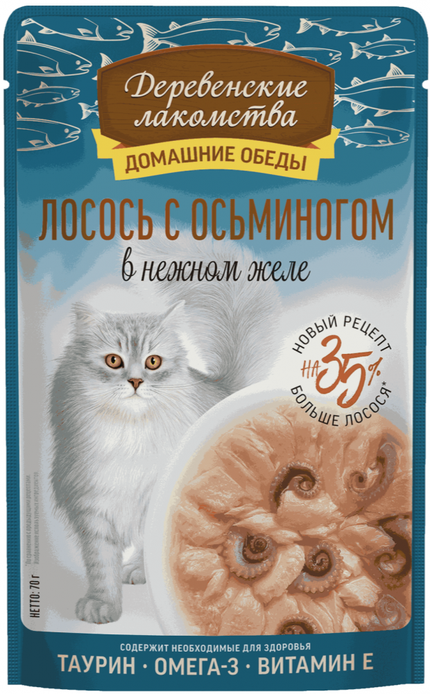 ПАУЧ Деревенские лакомства Лосось с осьминогом : ЖЕЛЕ 70 г для кошек