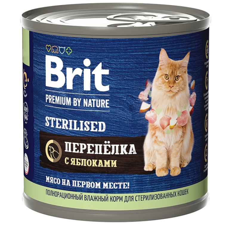 Корм Brit Premium Sterilised (консерв.) для стерилизованных кошек, перепелка и яблоки, 200 г