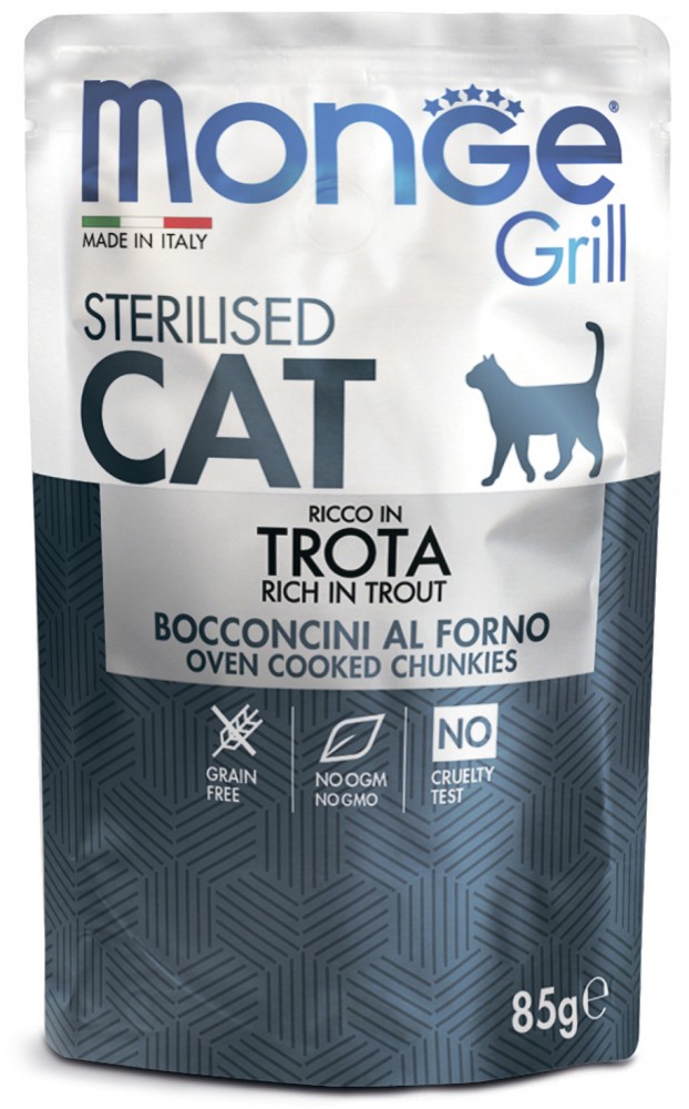 Влажный корм Monge Cat Grill Pouch паучи для стерилизованных кошек итальянская форель 85г