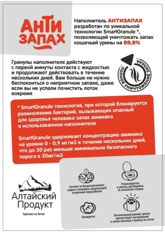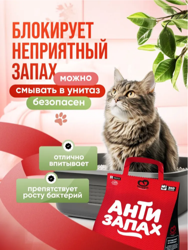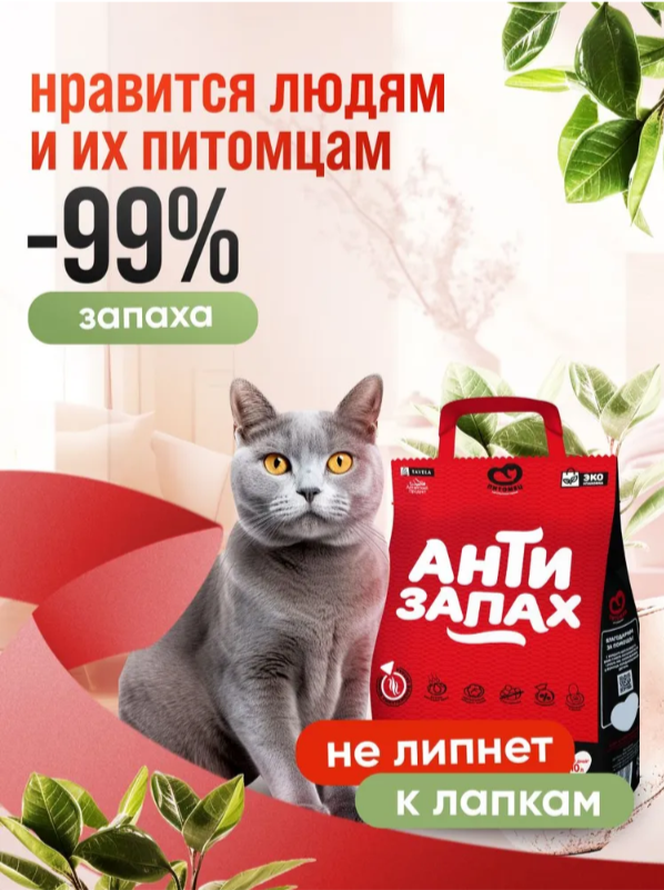 Мы решили проблему запаха из кошачьих лотков. Наполнитель Питомец. Антизапах не дает бактериям развиваться и образовывать пары аммиака. Наполнитель работает, даже если вы не почистили лоток вовремя.
