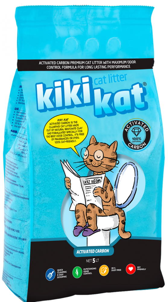 Бентонитовый наполнитель для кошачьего туалета KikiKat супербелый комкующийся, с активированным углем 5 л