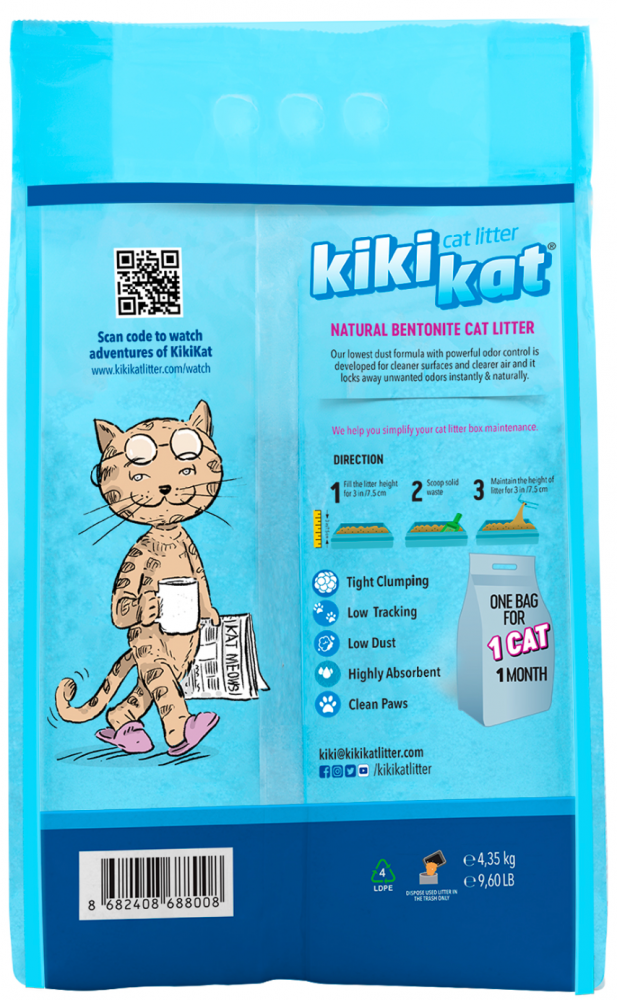 Бентонитовый наполнитель для кошачьего туалета KikiKat супербелый комкующийся, 5 л
