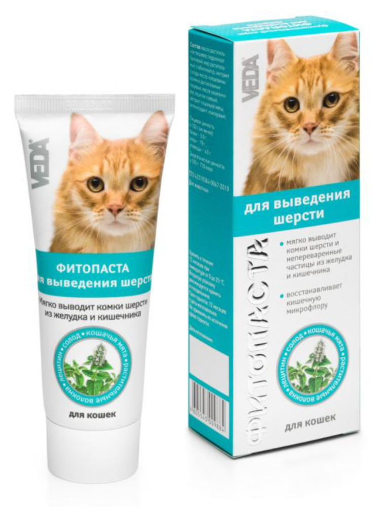 ФИТОПАСТА для выведения шерсти, для кошек, 75 мл