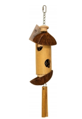 Игрушка в виде домика с отверстиями-окнами и крышей из кокосового ореха. При выборе аксессуаров ориентируйтесь на размер клетки.