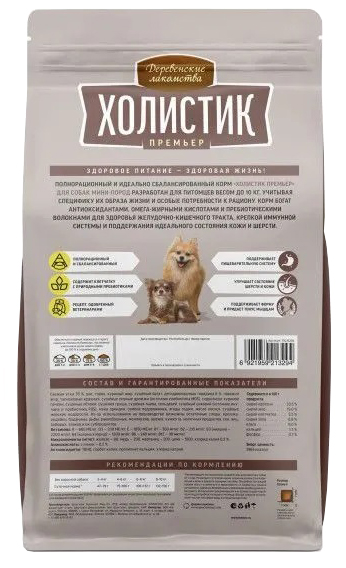 Корм Деревенские лакомства Холистик Премьер для собак малых пород, утка с рисом