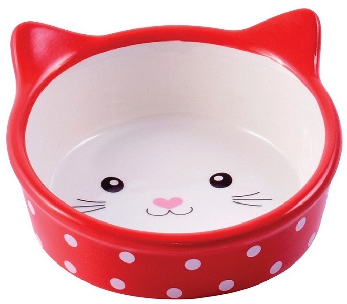 КерамикАрт миска керамическая для кошек "Мордочка кошки", 250 мл, красная в горошек